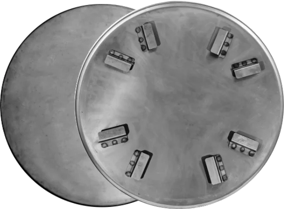Безопасность оборудования: Конструкция диска с углом загиба кромки 45º или 90º спроектирована так, чтобы края не выступали за пределы защитного кожуха машины. Это позволяет оператору работать вплотную к стенам, колоннам и другим препятствиям без риска ударов, что сохраняет вал и редуктор затирочной машины в целостности.